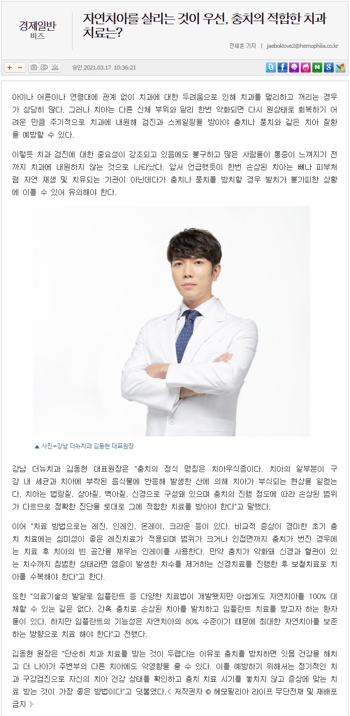 [헤모필리아]자연치아를 살리는 것이 우선, 충치의 적합한 치과 치료는?
