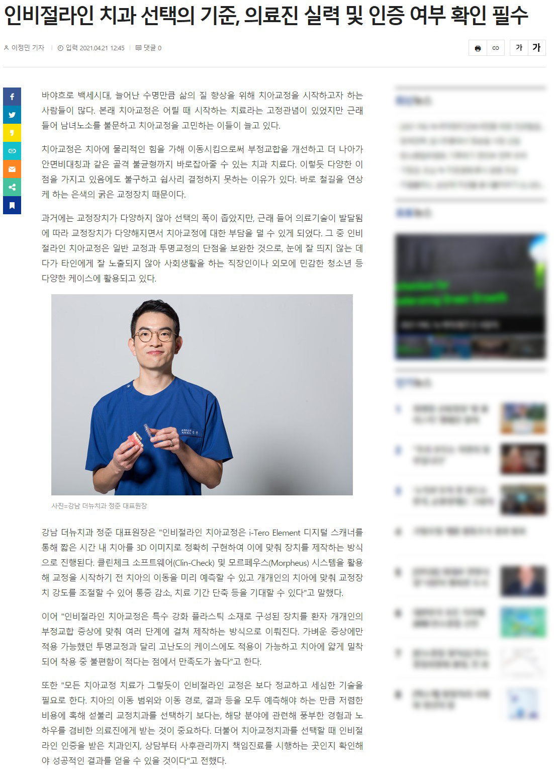 [환경일보]인비절라인 치과 선택의 기준, 의료진 실력 및 인증 여부 확인 필수