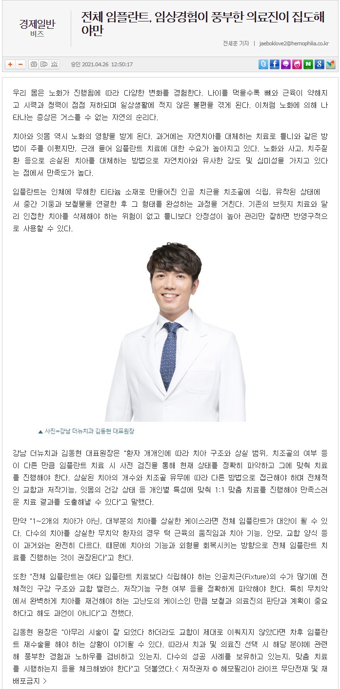 [헤모필리아]전체 임플란트, 임상경험이 풍부한 의료진이 집도해야만