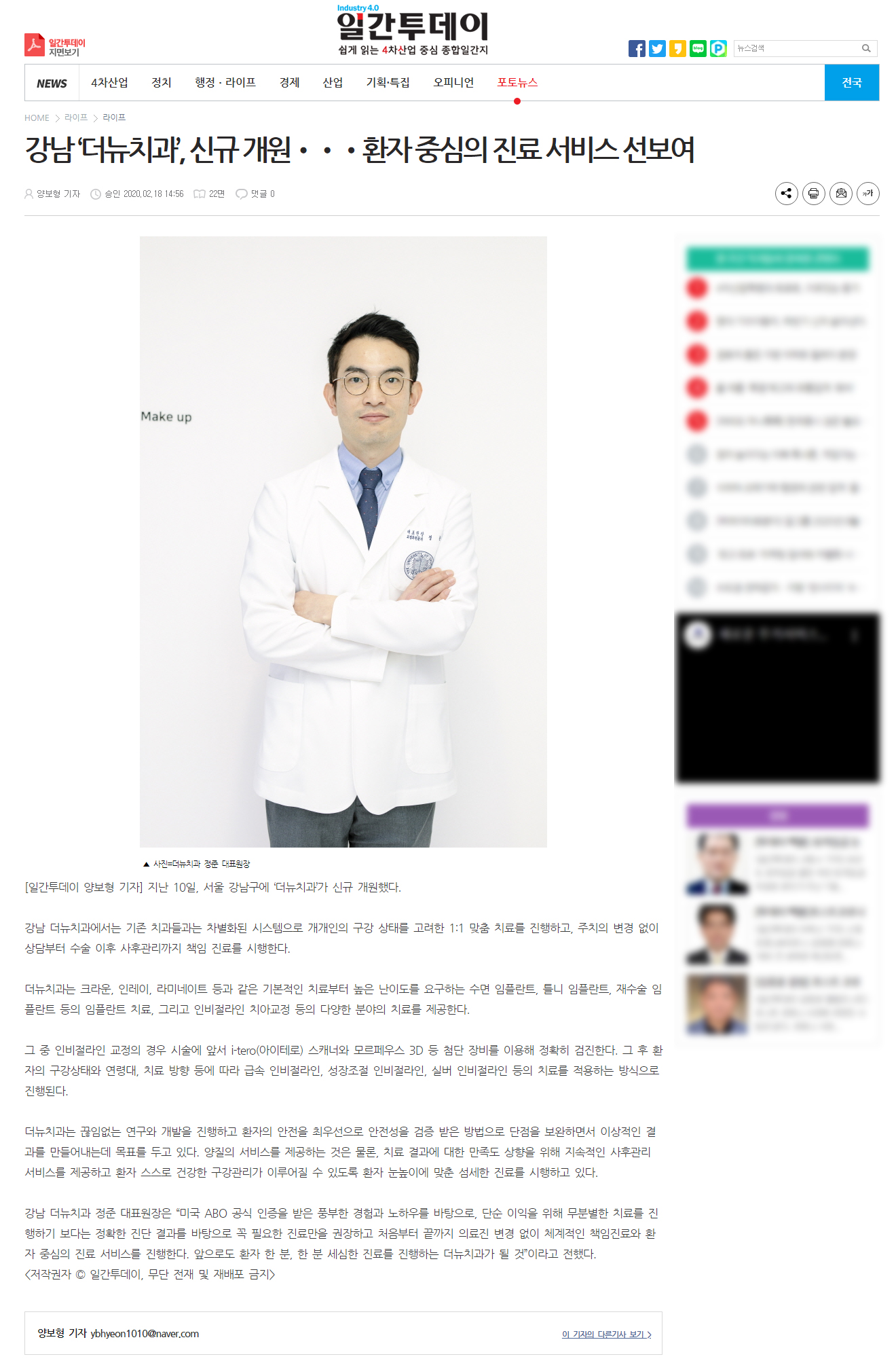 [이투데이] 강남 '더뉴치과', 신규개원 ··· 환자 중심의 진료 서비스 선보여