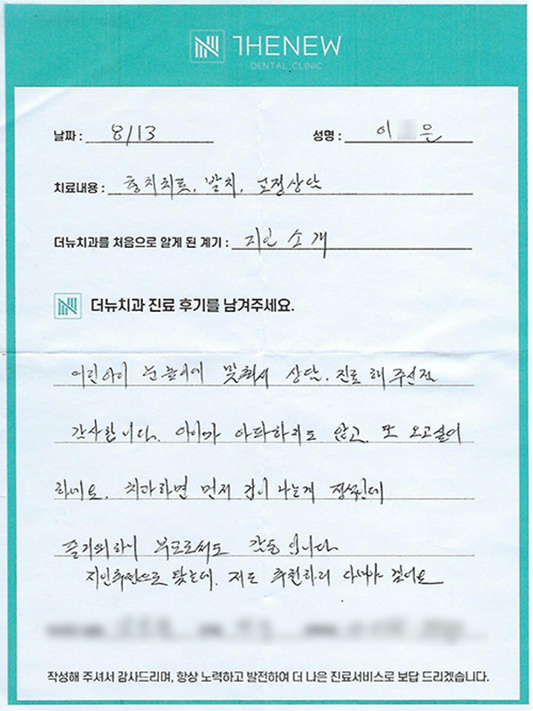 환자분들의 정성스러운 후기에 감사드리며