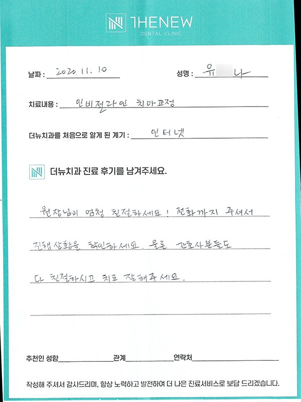 인터넷 검색을 통해 내원해주신 '유O나'님께서 직접 작성해주신 후기입니다.