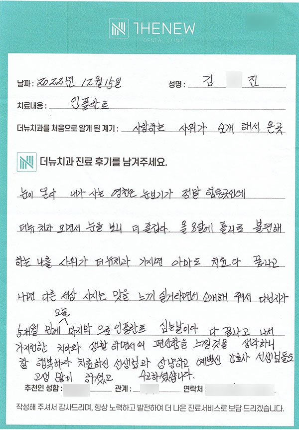 사랑하는 사위분의 소개를 통해 내원 해주신 "김O진"님께서 직접 작성해주신 후기입니다.