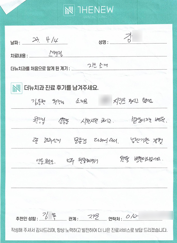 지인 소개를 통해 내원해 주신 "김O"님께서 직접 작성해주신 후기입니다.