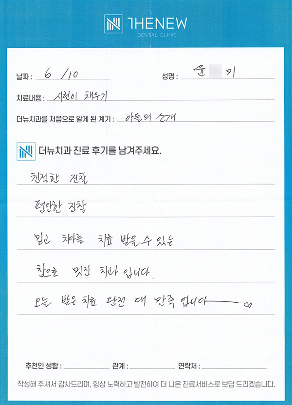 아드님의 소개를 통해 내원해 주신 "윤O미"님께서 직접 작성해주신 후기입니다.