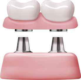 그 위에 딱 맞게 고정되는 틀니를 끼우는 방식입니다.