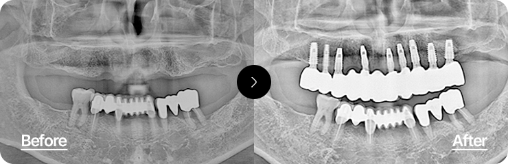 최소한의 임플란트로 최적의 위치에 식립하여 기능과 심미성을 동시에 회복하는 치료입니다.